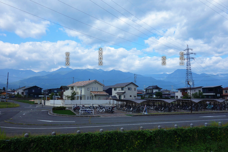 JR穂高駅のプラットホームから見た常念山脈の稜線。上空はほぼ雲に覆われている