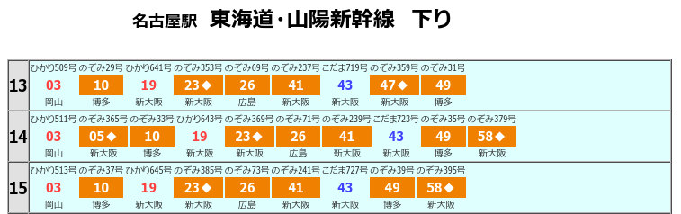 ■ 東海道新幹線 名古屋駅 14:19発 → 新大阪駅 15:27着 (松本から 運賃 11,110円)