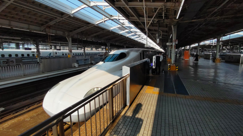 プラットホームに出ると、すぐに「のぞみ」が到着した。自由席は先頭2両で、窓越しに中を覗いただけで満席近くの乗客が詰め込まれているのがわかる。
