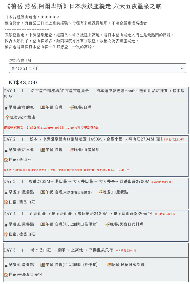 台湾の登山者たちの旅程表(亜州 荒野旅人)