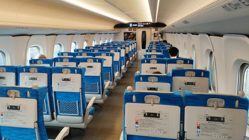 JR西日本のe5489で指定席車両の予約状況を見ると、各車両ともに窓際の席が3/4くらい埋まっている程度の乗車率。自由席も、名古屋に着く頃にはそれくらいの乗車率だった。