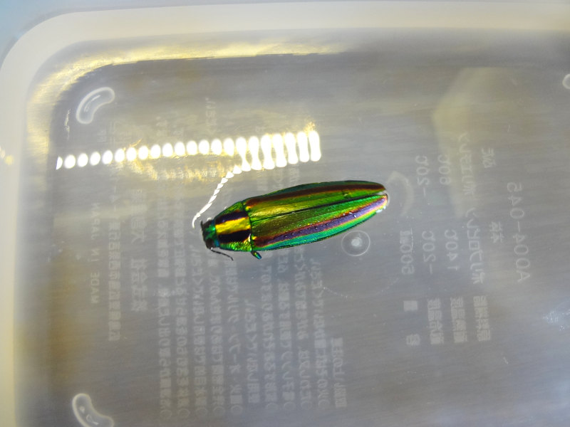 9月9日に、六甲山地の森林植物園 学習の森にある業務用の駐車場入口付近で拾ったタマムシの死骸。1ヶ月ほど放置していたが、標本化に着手した。