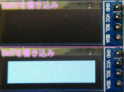 SSD1306にデバイス横幅の2倍の上書きデータを送信したときの状態