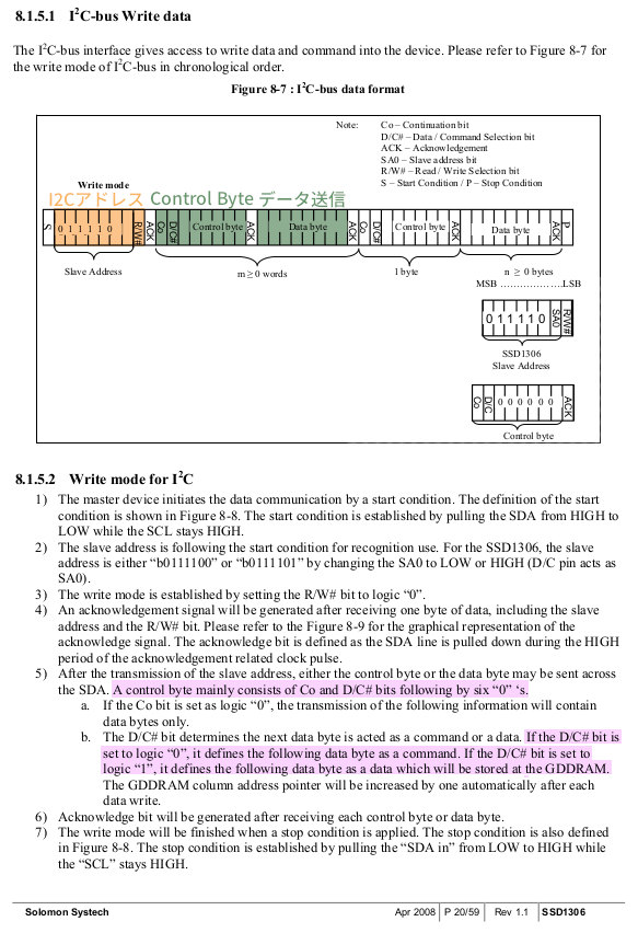 SSD1306にコマンドやグラフィックデータを送信する