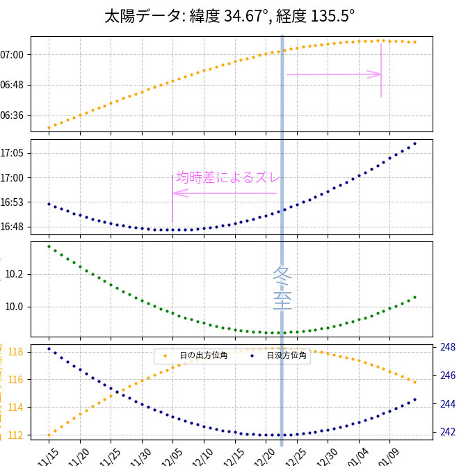 日出・日没の時刻と方位角を描画するPythonスクリプト