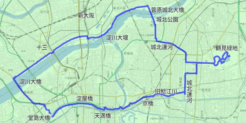| 淀川大橋 〜 菅原城北大橋(城北公園) | 08:18 〜 08:50 | 32分 |