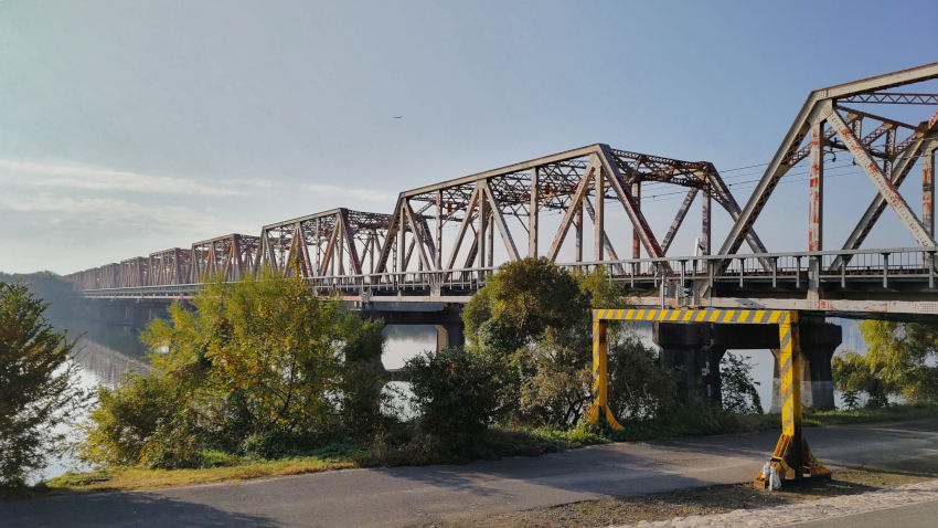 全長724mの橋を約2分で渡り、淀川の右岸側の遊歩道へ。