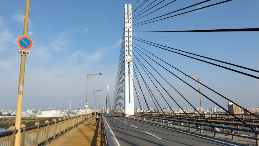 淀川大橋から7.8km、27分ほど走って菅原城北大橋に到着。