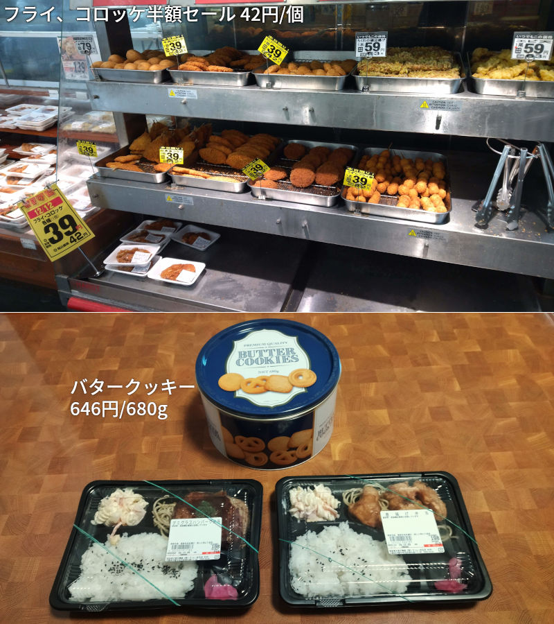 フライは1個42円に値下げして売られていた(値上げ前の去年の価格)。イワシのフライとミンチカツを購入して、冷凍保存する。