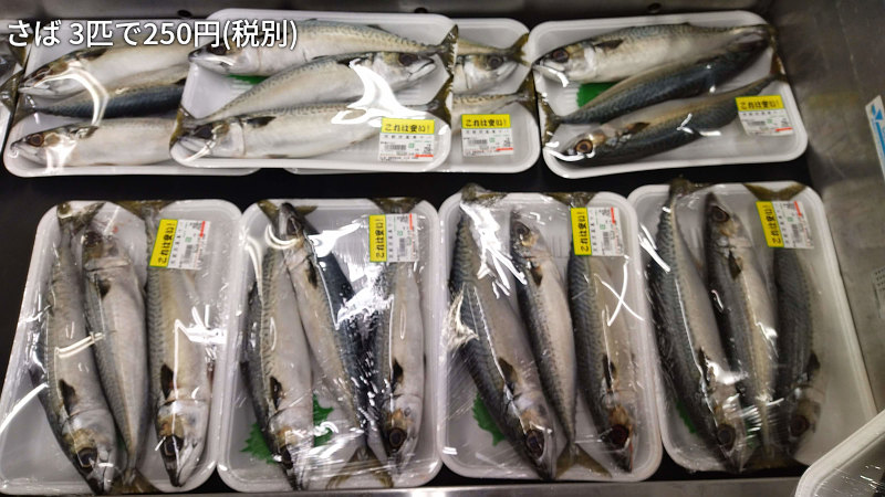 サバは2枚おろしにして、1匹を2人分にできる。鱗はないが皮を剥くのがちょっと面倒。さばき方の練習台の魚なので、1匹あたり2分くらいでさばける。