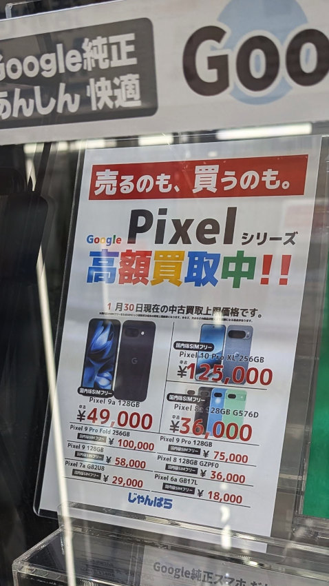 Pixelの中古買取価格(じゃんぱら) Pixel 9aは49,000円である