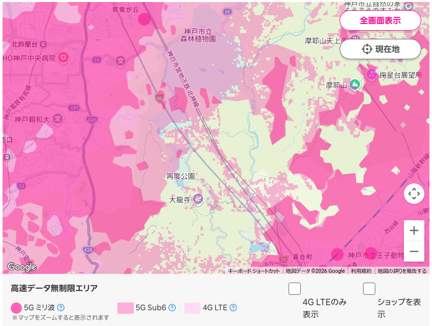 公式Webの通信エリアマップでは、森林植物園の全域や再度公園の修法ヶ原池付近は4G LTE通信可能エリアのはずだが、全く電波は捕まらず。いったいどういう基準で地図を作っているのか、「株主優待」の利用者として疑問符が付く。